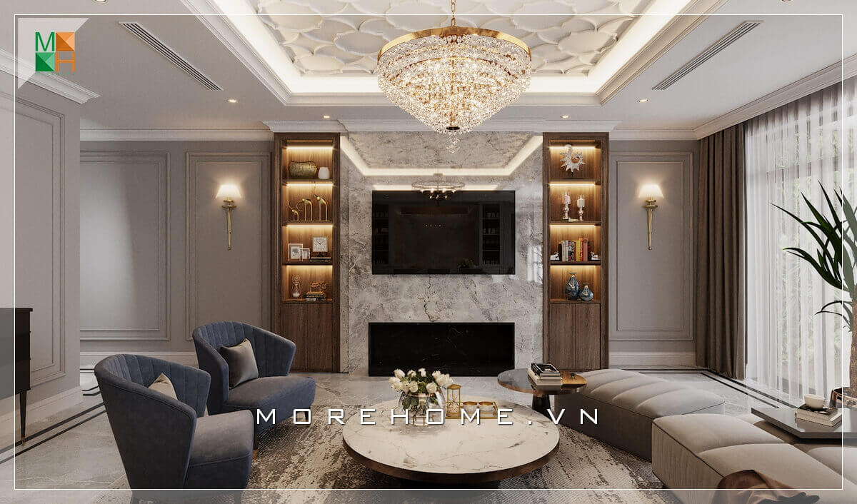 Mẫu thiết kế nội thất phòng khách chung cư cao cấp phong cách tân cổ điển