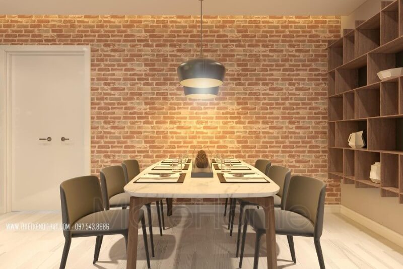 Bàn ăn đẹp đặt gọn gàng ở một góc nhà, không quá cầu kỳ về kiểu cách hay chi tiết trang trí phức tạp, bàn ăn đơn giản là nơi quây quần của cả gia đình, tăng sự ấm áp và gần gũi giữa các thành viên trong gia đình.