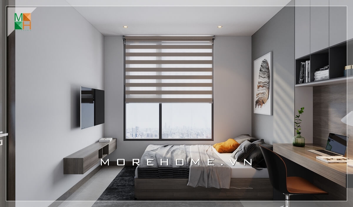Mẫu thiết kế nội thất phòng ngủ chung cư nhỏ hiện đại, đơn giản và tiện nghi