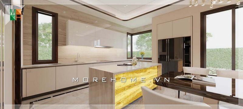 Thiết kế nội thất phòng bếp biệt thự hiện đại, đơn giản và tiện nghi