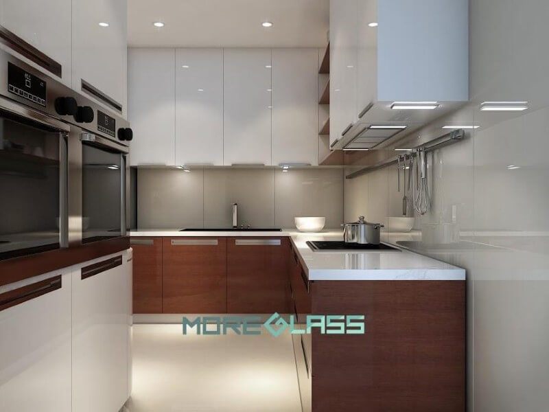 Thi công hoàn thiện mẫu kính ốp bếp cường lực màu ghi xám đẹp cho chung cư, biệt thự, nhà phố.
