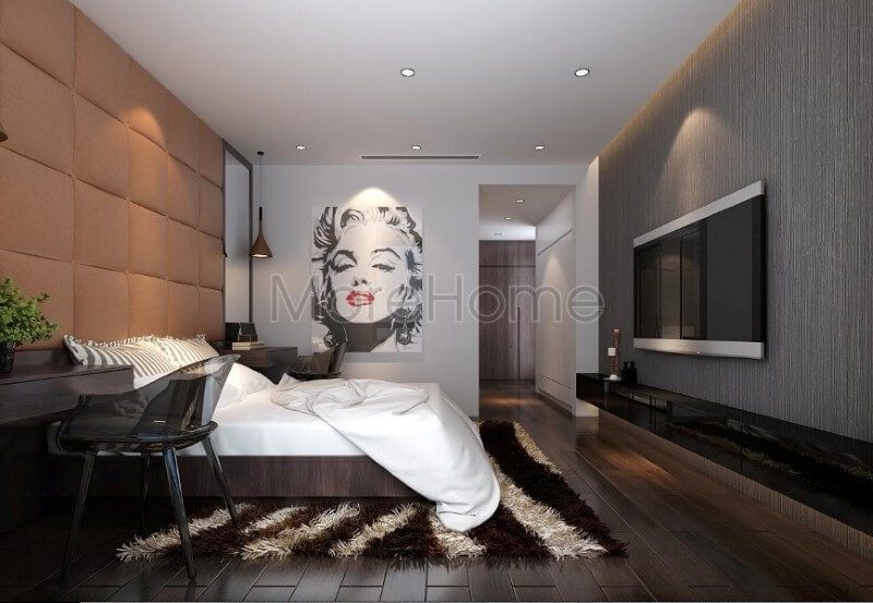 Thiết kế nội thất phòng ngủ chung cư hiện đại với tone màu chủ đạo là nâu nhẹ nhàng mang đến sự ấm áp và gần gũi cho không gian sống