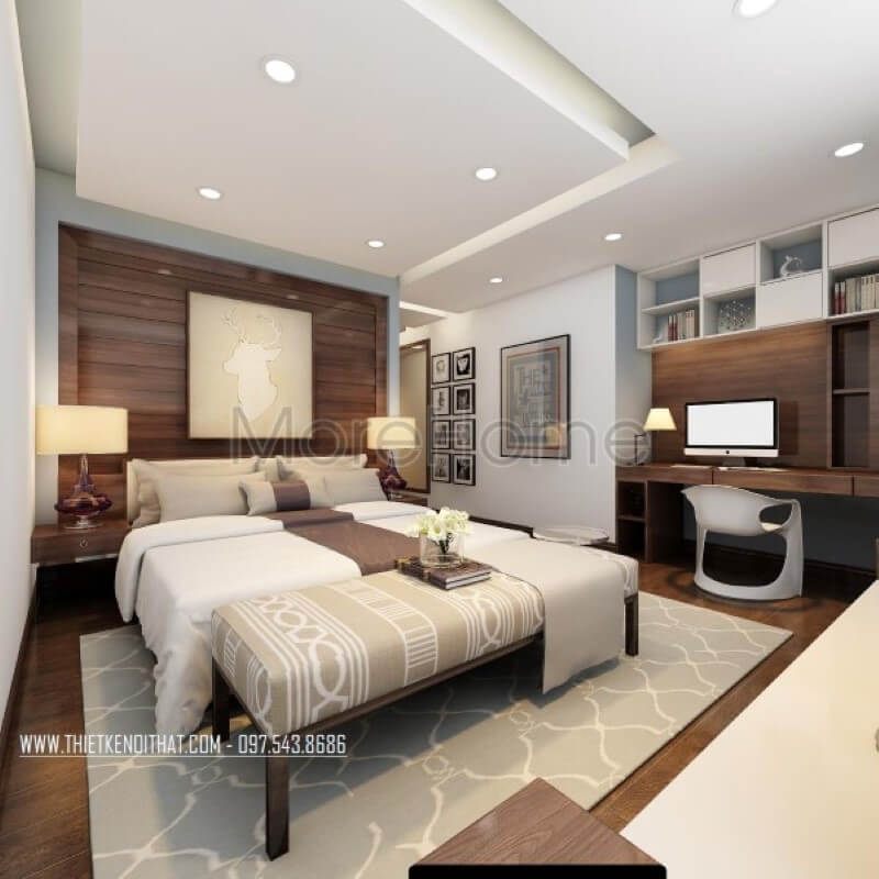 Nội thất phòng ngủ hiện đại với nhiều đồ nội thất đáp ứng đầy đủ nhu cầu sinh hoạt cảu gia chủ
