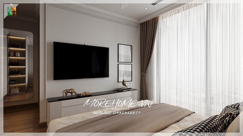 Nội thất phòng ngủ hiện đại với tone màu nhẹ nhàng và tinh tế mang đến cho gia chủ một không gian nghỉ ngơi riêng tư và thoải mái nhất