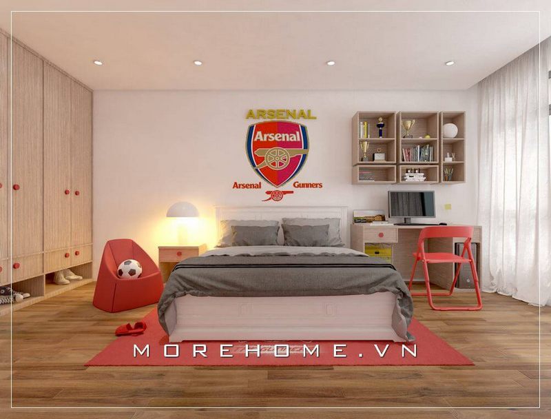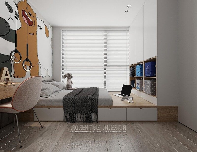 Thiết kế giường ngủ con trai tại chung cư hiện đại