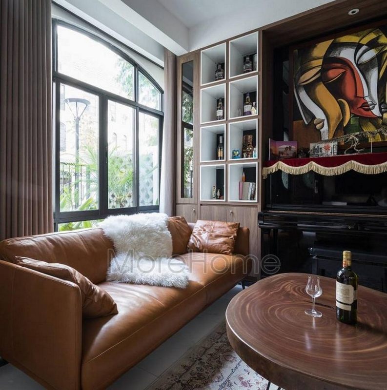 Bộ sofa bọc da màu be hiện đai đón tiếp khách tới chơi chu đáo cũng như thể hiện cá tính gu thẩm mỹ riêng của gia chủ trong không gian sống của mình.