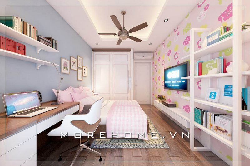 Thiết kế phòng ngủ bé gái diện tích nhỏ, toàn bộ nội thất hiện đại, đa năng tích hợp nhiều công năng sử dụng tạo sự thuận tiện nhất cho con trẻ