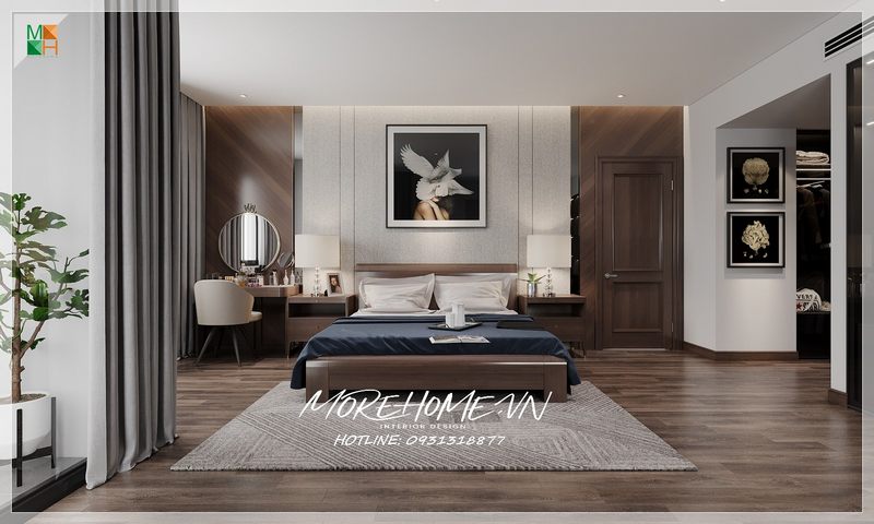 Nội thất phòng ngủ Master cao cấp, chất liệu gỗ tự nhiên nhập khẩu cùng màu sắc sang trọng tạo nên một phòng ngủ sang trọng và đầy đẳng cấp