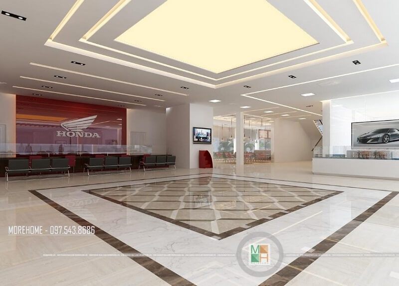 Mẫu thiết kế nội thất văn phòng trung tâm sát hạch lái xe Honda theo phong cách hiện đại.