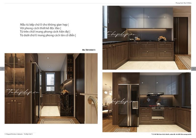 Ngắm nhìn mẫu thiết kế nội thất bếp tân cổ điển sang trọng kiểu dáng chữ L bắt mắt và tiện nghi dành cho không gian bếp chung cư, nhà phố, biệt thự.