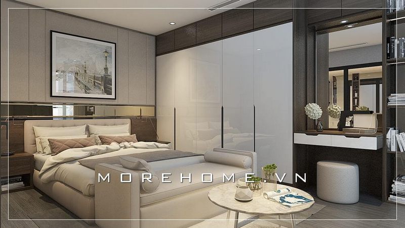 Thiết kế nội thất giường ngủ nhà phố cao cấp bọc da phong cách hiện đại, sang trọng