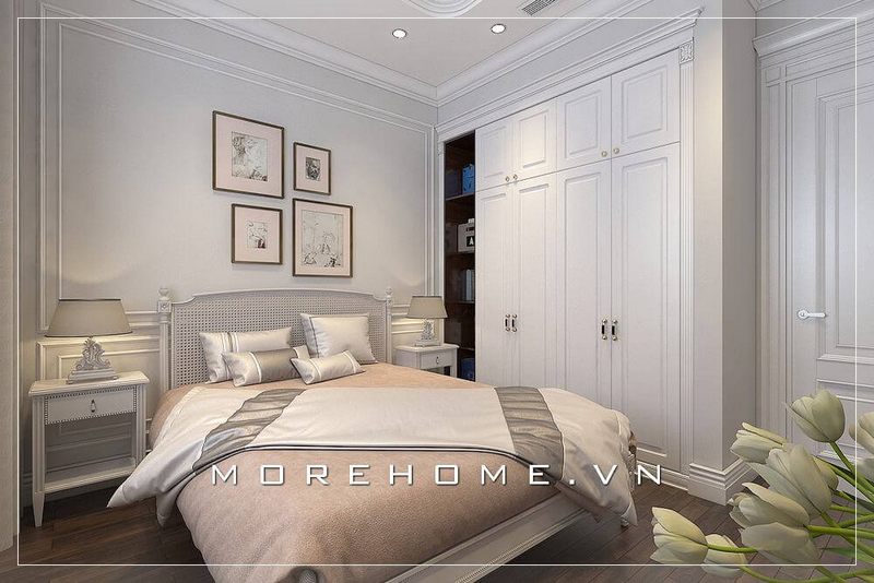 Gợi ý cho bạn mẫu tủ quần áo ấm tường màu trắng tiết kiệm tối đa diện tích cho không gian phòng ngủ chung cư