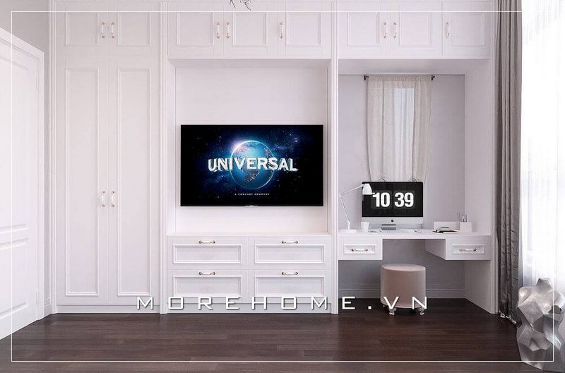Mẫu tủ áo màu trắng tinh tế, phong cách tân cổ điển độc đáo tạo điểm nhấn cuốn hút cho cả văn phòng