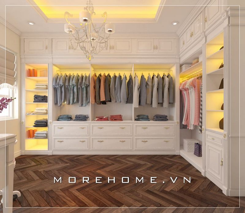 Mẫu tủ áo biệt thự được thiết kế theo phong cách tân cổ điển mang đến sự sang trọng và tiện nghi cho gia chủ trong quá trình sử dụng