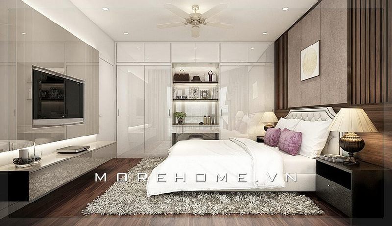 Mẫu tủ quần áo gỗ công nghiệp cho phòng ngủ Master tại chung cư hiện đại