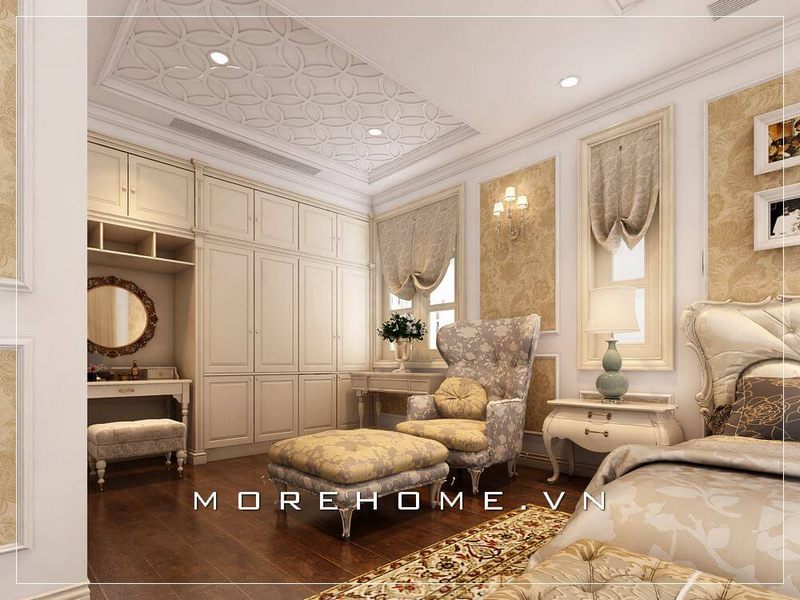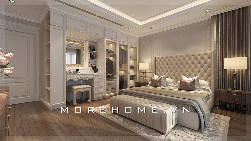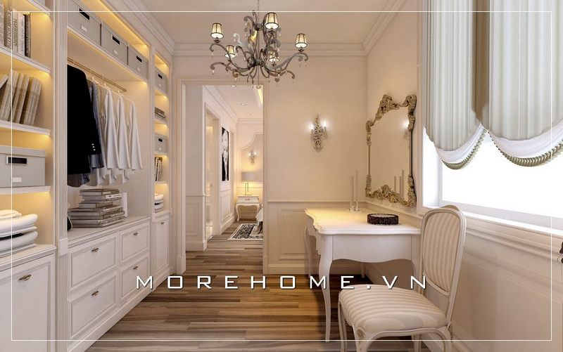 Thiết kế tủ áo tân cổ điển đầy sang trọng cho phòng ngủ Master biệt thự cao cấp