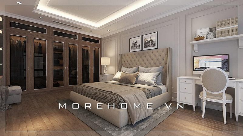 Mẫu thiết kế tủ quần áo phong cách tân cổ điển tại phòng ngủ Master biệt thự