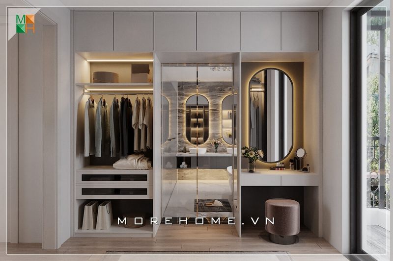 Thiết kế tủ áo hiện đại cho phòng ngủ master tại biệt thự cao cấp