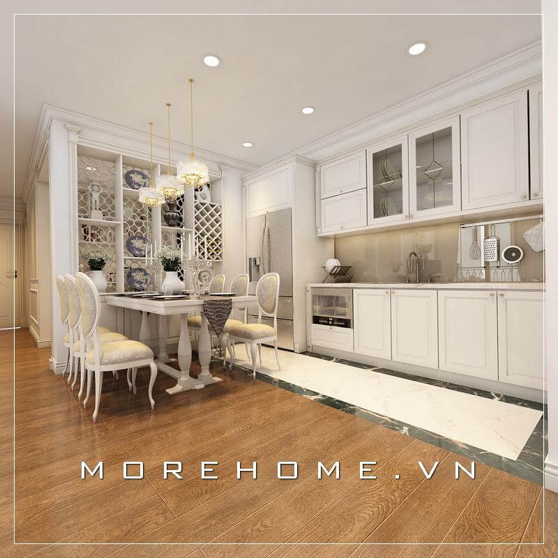 Mẫu tủ bếp gỗ màu trắng cao cấp, sang trọng cho phòng bếp chung cư