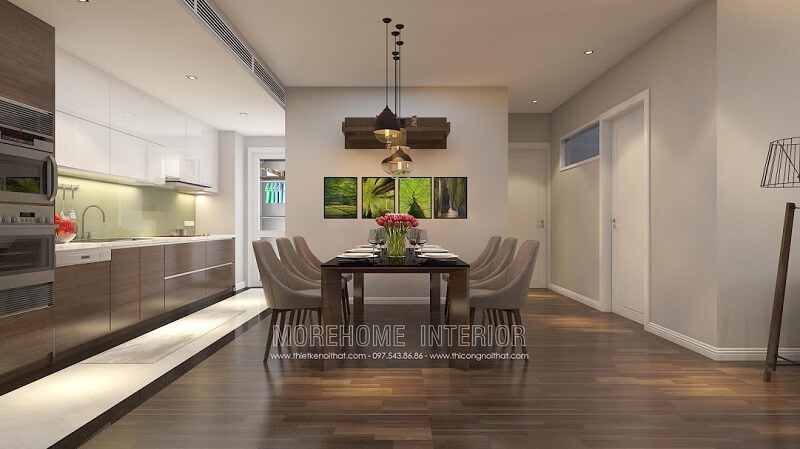 Mẫu bàn ăn gỗ hiện đại, đơn giản cho phòng bếp chung cư