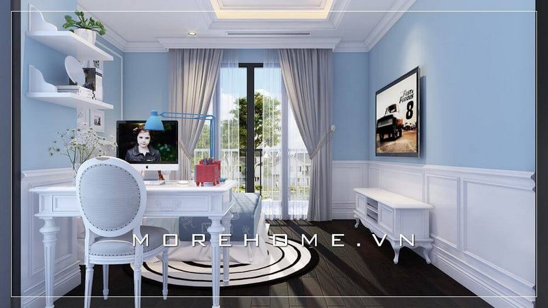 Bàn học liền kệ trang trí, kệ tivi, tủ đựng đồ tạo không gian đẹp, liền mạch, tối giản diện tích nhưng lại đảm bảo công năng hiệu quả cho phòng trẻ em