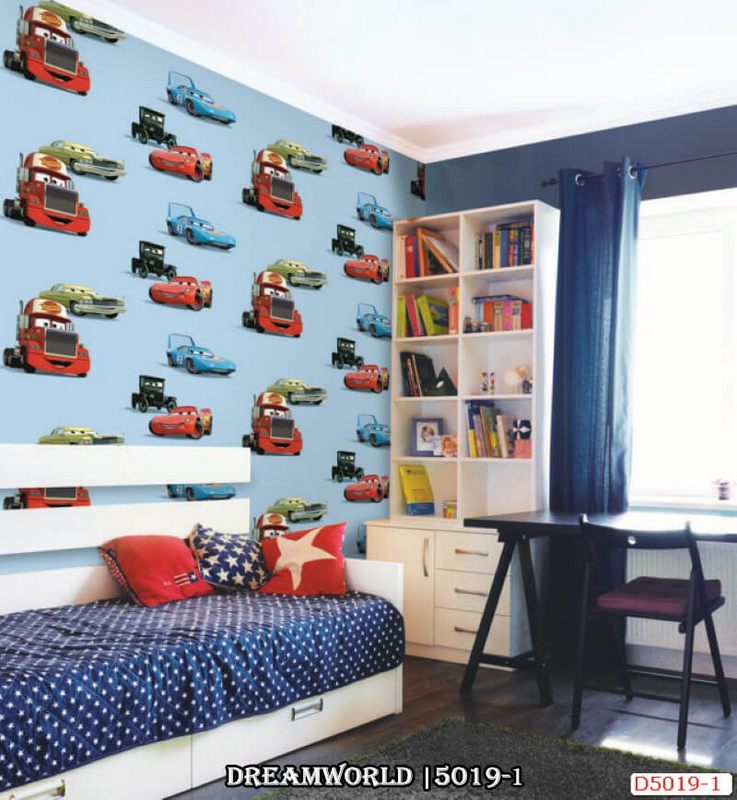Mẫu giấy dán tường cao cấp Hàn Quốc họa tiết hoạt hình tông màu xanh.