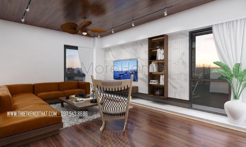 Thiết kế nội thất phòng khách hiện đại, đẹp, thông thoáng hài hòa với thiên nhiên.