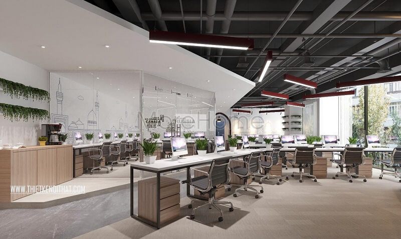 Mẫu thiết kế văn phòng làm việc chuyên nghiệp được trang bị đồ nội thất cao cấp và hiện đại.